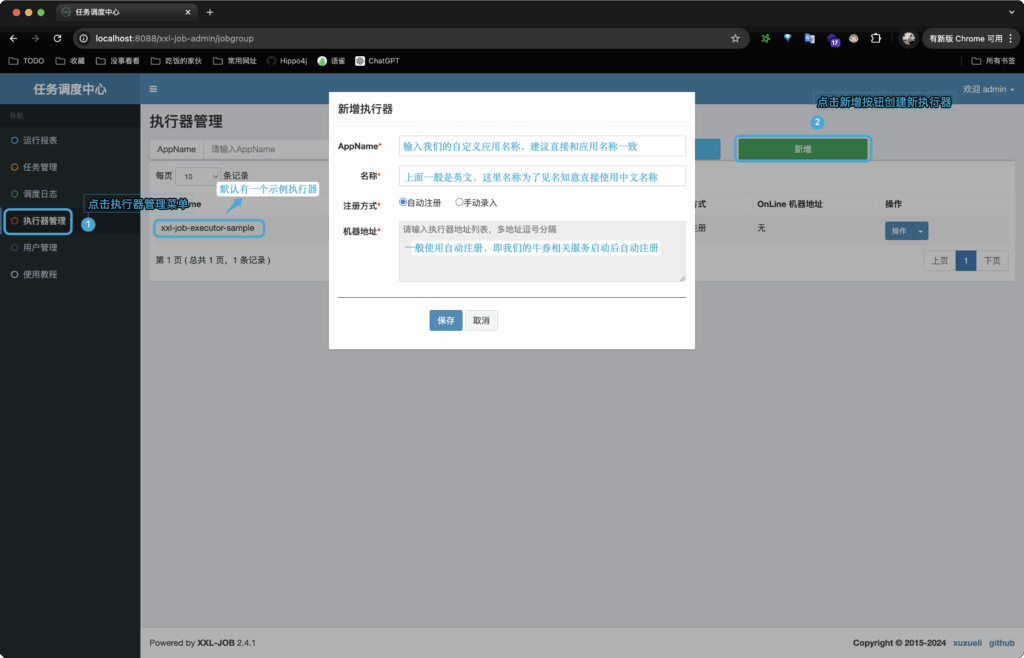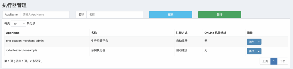 完成上述配置后,我们尝试启动项目,然后访问 http://localhost:8088/xxl-job-admin/jobgroup 查看执行器地址是否有值。如果正确有数据即为创建成功。