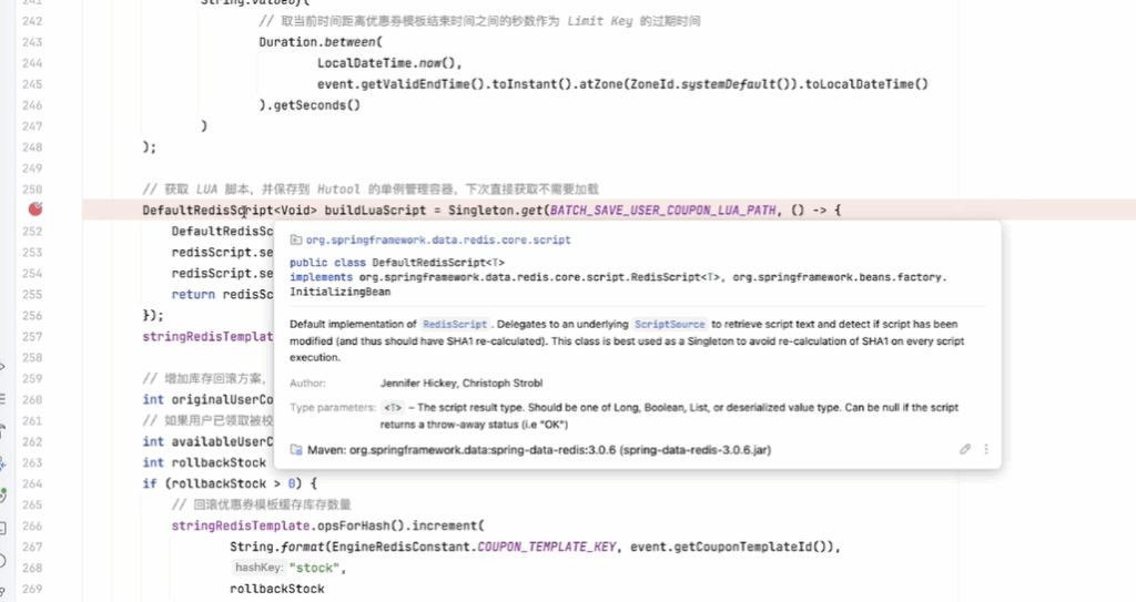 大体的思路就是将用户是否已领过券的判断提前,不要在批量插入异常时再做处理,由于我的代码跟马哥的不太一样,改了一些东西,大家可以对照着看一下。
