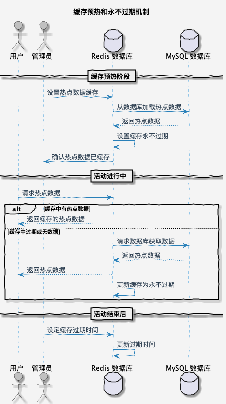 - 永不过期:热点数据永不过期,指的就是可以预知的热点数据,在活动开始前,设置过期时间为 -1。这样的话,就不会有缓存击穿的风险。