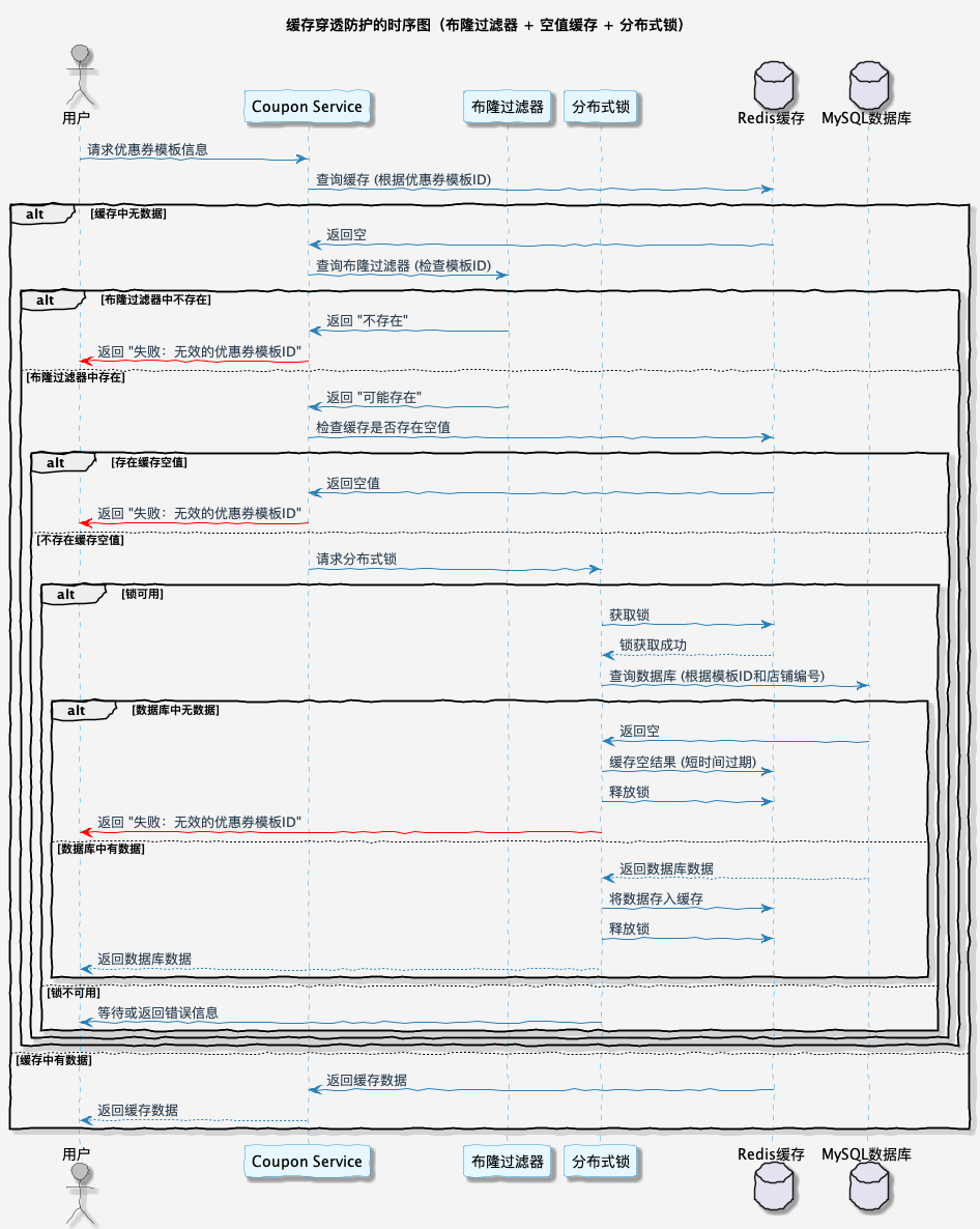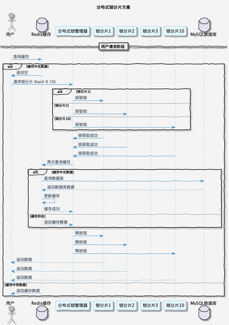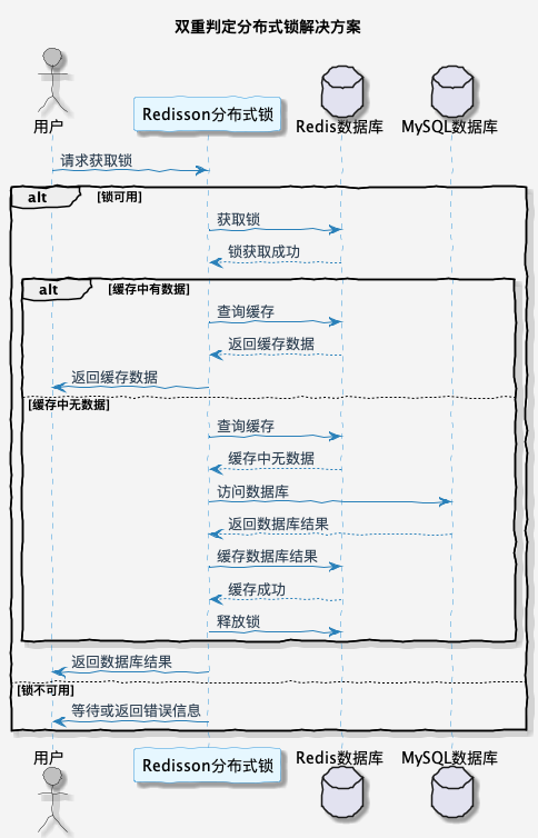 - 1. 获取锁:在查询数据库前,首先尝试获取一个分布式锁。只有一个线程能够成功获取锁,其他线程需要等待;