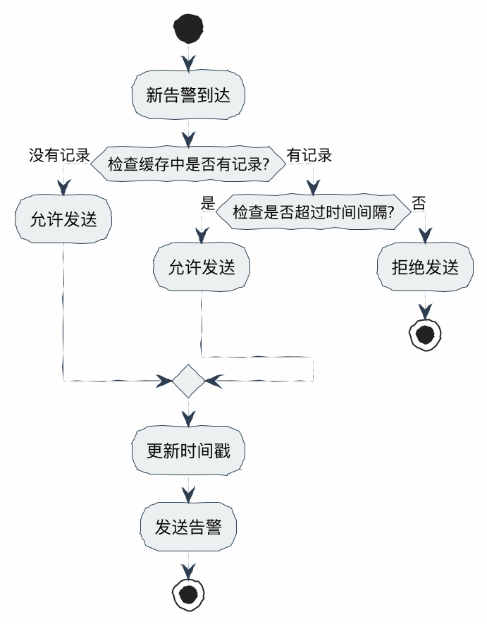 - 令牌桶/漏桶:主要用于流量整形(让请求平滑处理),对于“告警”这种低频突发场景,不需要平滑,只需要“去重”。