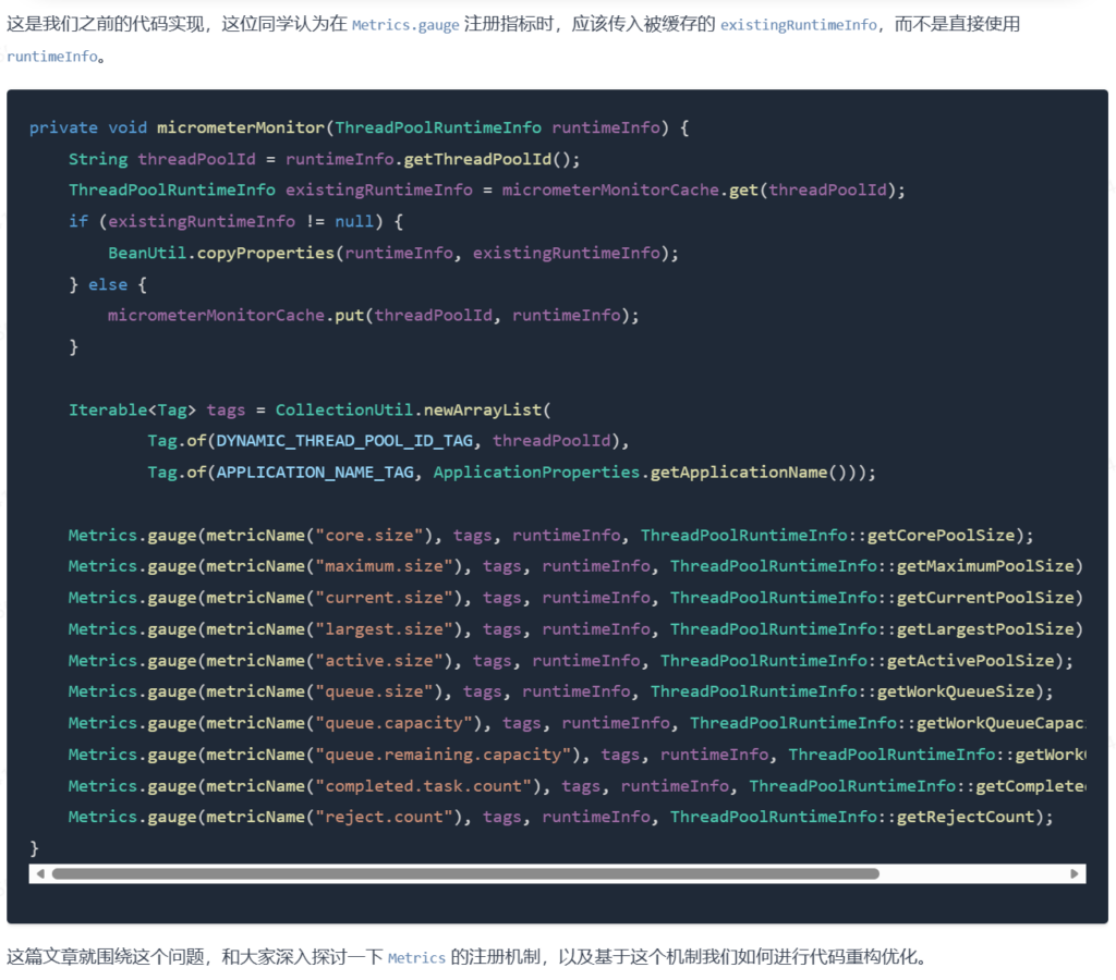 micrometerMonitorCache是一个Map,它强引用了ThreadPoolRuntimeInfo。 - Micrometer 的