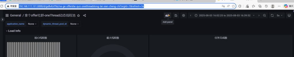 如果你打算将项目部署到公网环境,可以将上述 URL 替换为你自己部署的 Grafana 地址。前端展示的线程池监控页面,就是通过接口动态获取该参数来完成跳转与展示的。根据图片的网站,我写下如此内容