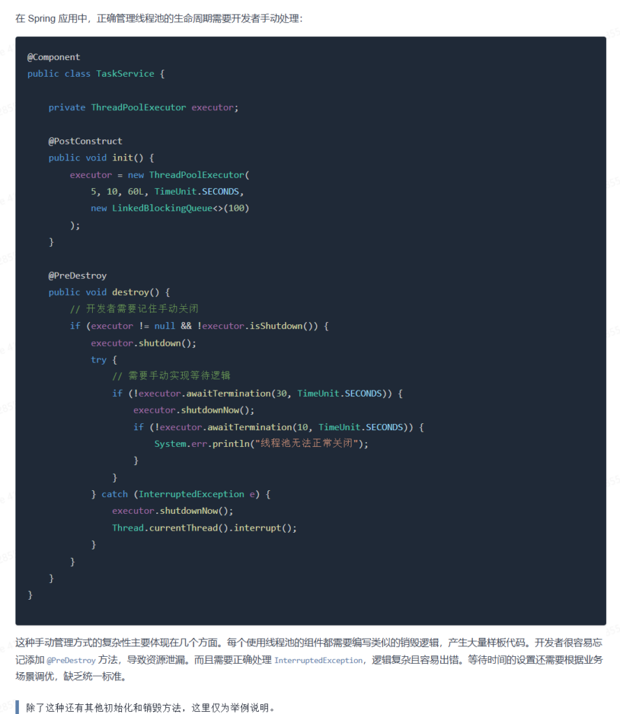 在第一篇中,我们解决了线程池自身“优雅关闭”的核心技术问题。但一个强大的框架,不仅要能干,还要“省事”。尤其是在 Spring 这样一个高度自动化、声明式的框架里,我们希望它能“顺其自然”地被管理。